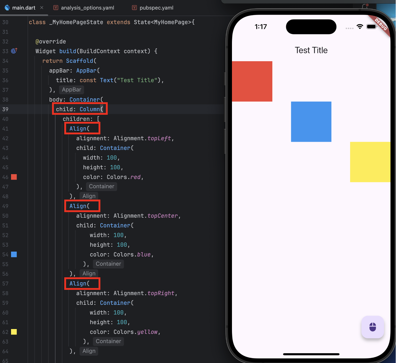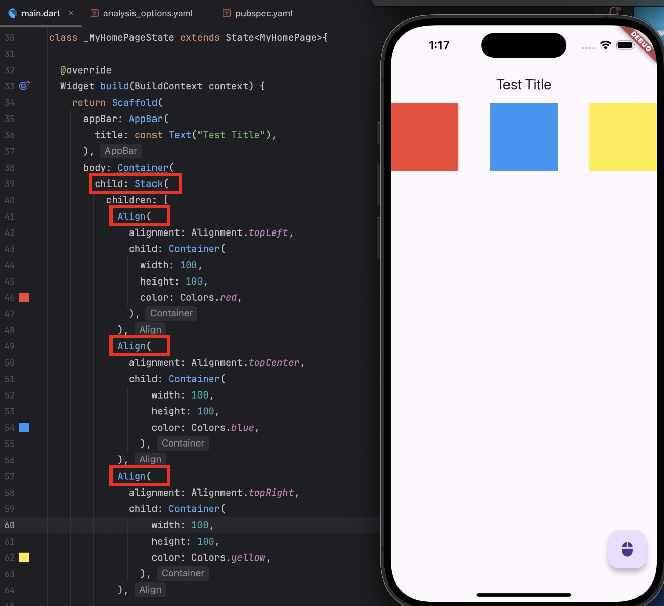 1. Stack 위젯 내에 여러 개의 Align 위젯 사용