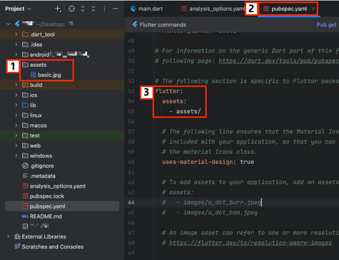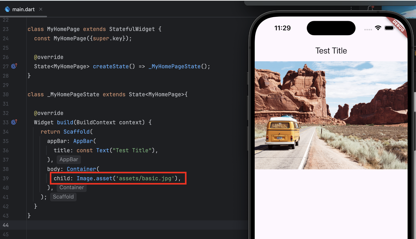 ** Image.asset('이미지를 넣은 폴더명 / 이미지명.확장자')