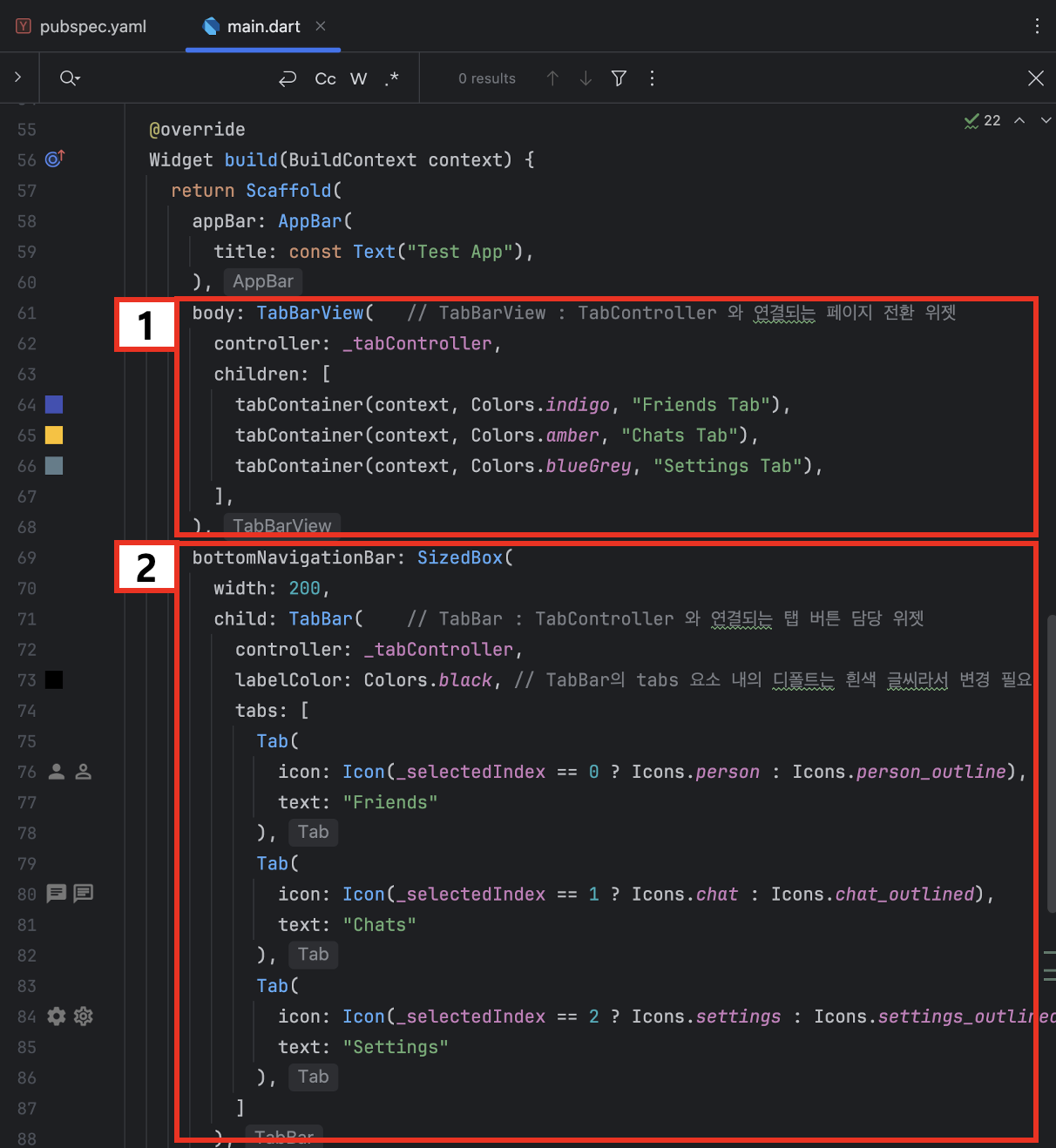 ** TabBar의 tabs 요소 내의 디폴트는 흰색 글씨라서 변경 필요 - BuildContext : Flutter 에서 BuildContext 는 위젯이 어디에 위치해 있는지에 대한 메타 정보를 담은 것
