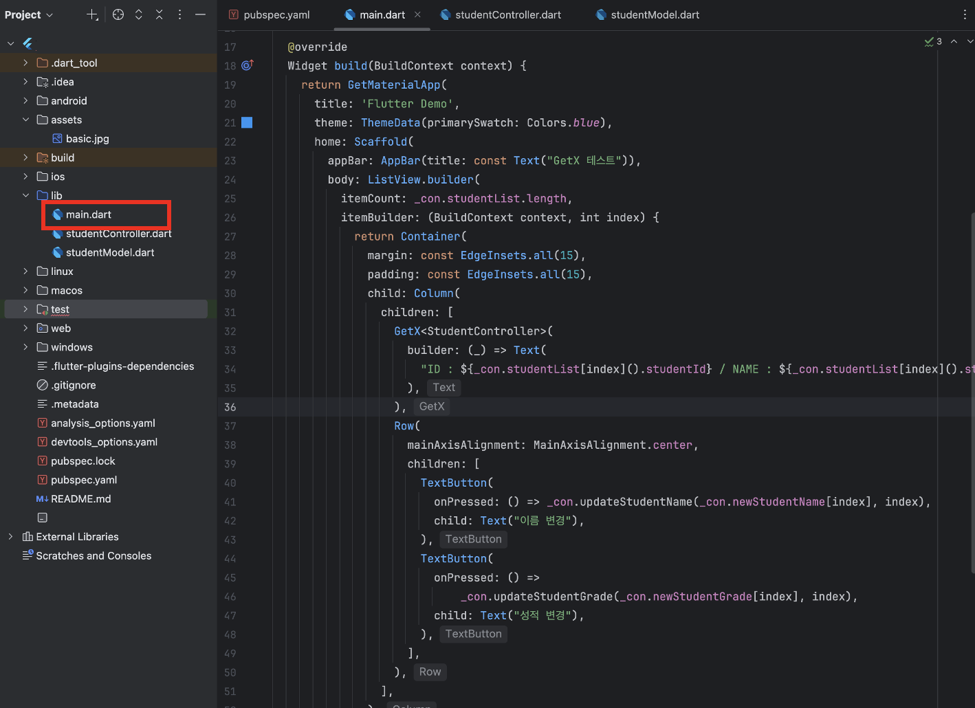 final StudentController _con = Get.put(StudentController()); // Get.put() : GetX에서 의존성 주입을 할 때 쓰는 메소드