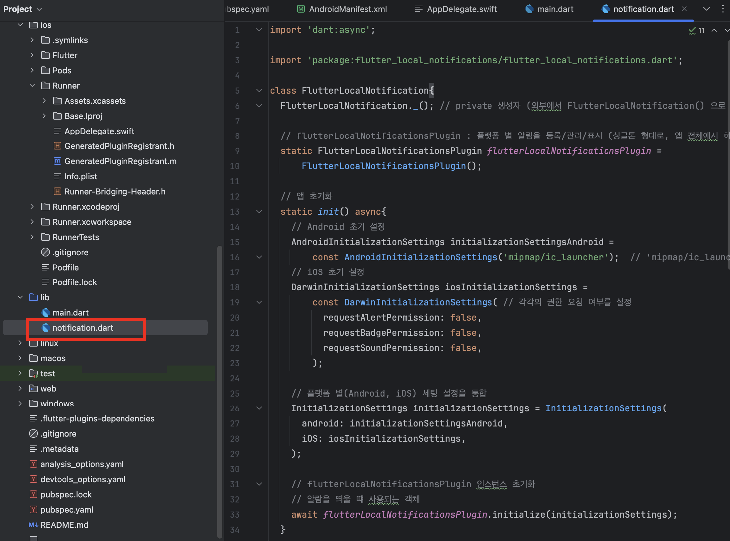 // flutterLocalNotificationsPlugin 인스턴스 초기화